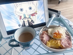 社長の皆様こんばんは❕秘書のりのです❕ お久しぶりの… 「ベーコンエッグフレンチトースト」 お気に入りのミルクティーといっしょに。 あまい×しょっぱいは大優勝✊🏻🩵 それではまた❕