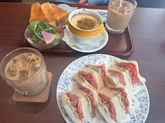 あおいです! 友達とにしむら珈琲行きました! 初めて行ったんですけど 内装が綺麗で凄いレトロだなって思いました✨ サンドイッチがものすごく美味しくて あっという間に食べちゃいました😋 友達が食べてたグラタンも美味しそうで 次行った時はグラタンを食べようと思いました︎👍🏻 ̖́-
