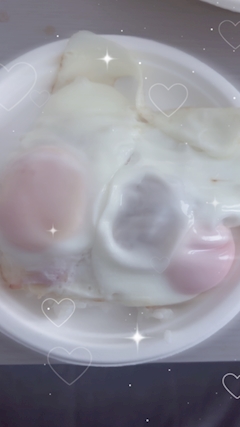 あおいです! 最近ハマってる食べ物があって それはベーコンエッグなんですよ‼️ ベーコンエッグは空きっ腹に丁度いいし 卵2個消費できるし簡単に作れるので大好きです🥰 皆さんは塩派?醤油派?どっちでか❓ ちなみに私は塩から醤油になりました︎👍🏻 ̖́-