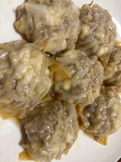あおいです! 包まなくてもいいシュウマイを作りました! 初めて作ったけど美味しくできて良かったです! 次の日ようで5個ぐらい残してたのに 美味しすぎて全部食べちゃいました🥲 食欲って怖いですね😢 次はチキン南蛮とか作ってみたいですね!
