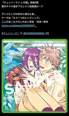こんちゃ、うららです🐈 なんとか体調よくなってきました✌🏻 お休みの間連絡してくださった社長さまがたの 優し〜い言葉に救われましたね₍՞ ̳ ̫ ̳՞₎ 今日からゆるやかに頑張りたいと思います🎶🎶 あとはやくチェンソーマンもっかい観にいきたいです😾 てかこの特典ホマにほしい、もうないかなあ〜〜(T_T) チェンソーマン・レゼ篇はいずれ万病に効くと信じて 休みまでがんばりやす( ˆᴗˆ )💫