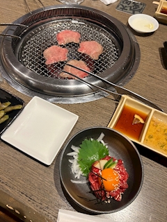 こんにちわです🧸 あかりさんです(՞ .ˬ.՞)" 今回のブログもやきにくなのですが なんと念願の焼肉屋さんにいけました🥳 うれしい🥩🔥🫶 そして、、、 前のブログに ユッケをたくさん食べたいと書いたのですが 今回はお肉がどれも美味しすぎて 2個でおさめておきました( ՞ . ̫ . ՞ ) ホルモン久しぶりに食べたし コチュジャン置いてあって辛いもの好きな あかりさんにとってはありがたかったです🥰🥰 いつもは焼肉屋さんではライスは頼まない派なのですが 最後は我慢できなくて頼んじゃいました🍚😖 食べすぎちゃったけど 幸せ空間でした👍🏻⟡.· それでわ(*´˘`*)