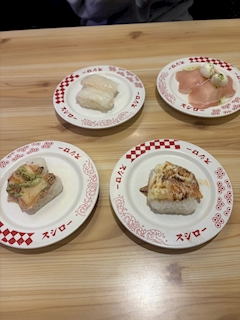 あおいです! 久しぶりに友達とスシローに行ってきました! いつも同じものしか食べないので 友達にちがうものもたべたら?って言われるんですけど なかなか挑戦できないんですよね💦 手前のサーモン2皿はいつも4皿ぐらい食べるんですけど なかなか飽きないですね︎👍🏻 ̖́- サーモンが1番!!!